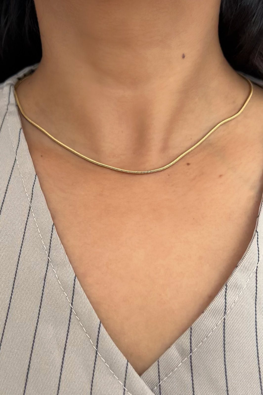 Our Slythera Snake Chain is the perfect statement with a simple outfit. Wear it solo for a minimalist vibe or layer it up for a bold statement- either way, it’s a classic that never goes out of style.