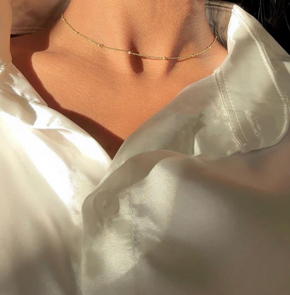 Meet Polène - our perfect basic necklace. This dainty chain adorned with delicate spheres will become your everyday go-to for effortless style. Versatile and perfect for layering, it is a key piece to add a touch of chic simplicity to any look.