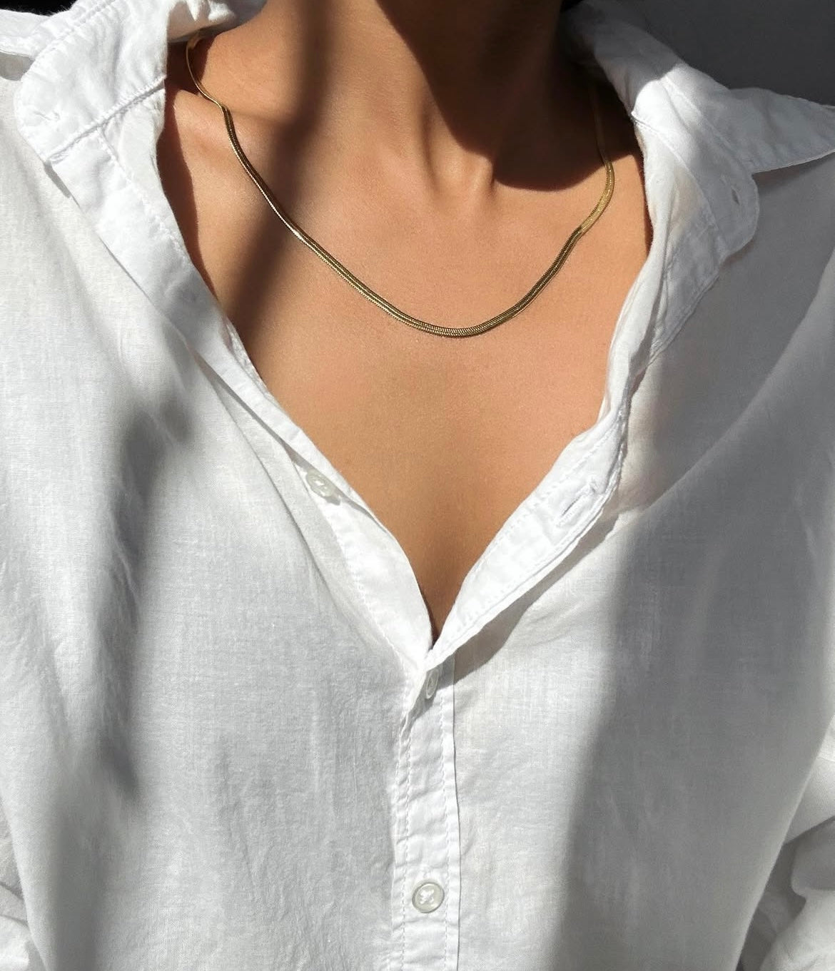 Our Zaria Herringbone Chain is the perfect statement with a simple outfit. Wear it solo for a minimalist vibe or layer it up for a bold statement- either way, it’s a classic that never goes out of style.