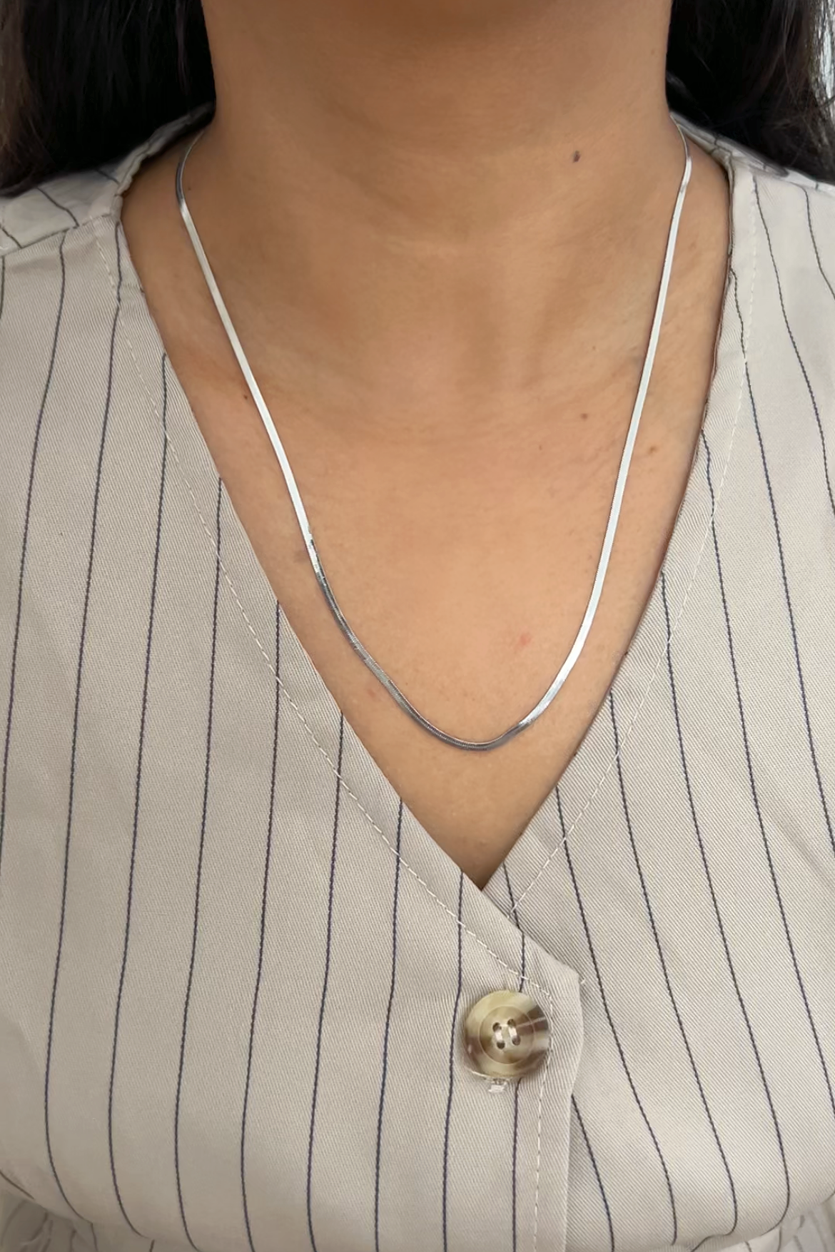 Our Zaria Herringbone Chain is the perfect statement with a simple outfit. Wear it solo for a minimalist vibe or layer it up for a bold statement- either way, it’s a classic that never goes out of style.